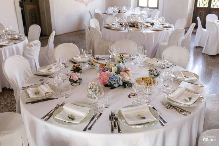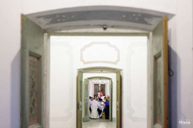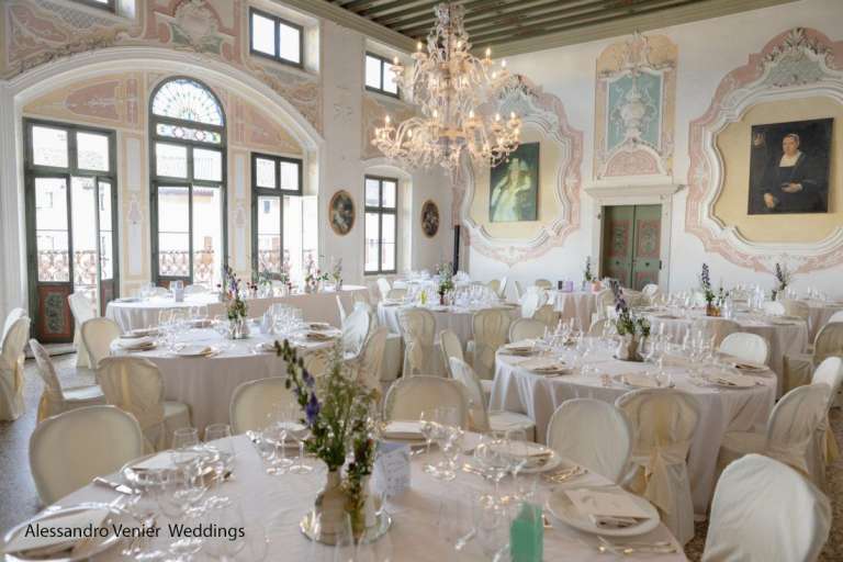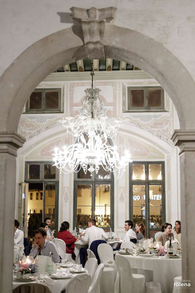 il Grande Salone con affaccio sulla piazza, unico nel suo genere per il respiro che gli conferisce il soffitto a doppia altezza e per bellezza dei decori può ospitare un banchetto nuziale da 100 persone.